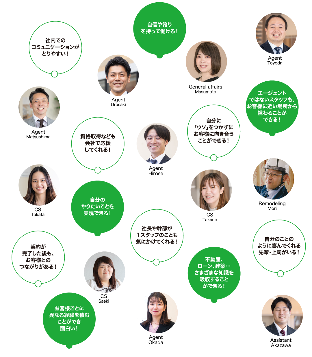 ハウスマーケットのスタッフから会社の魅力についてメッセージを集めてみました。